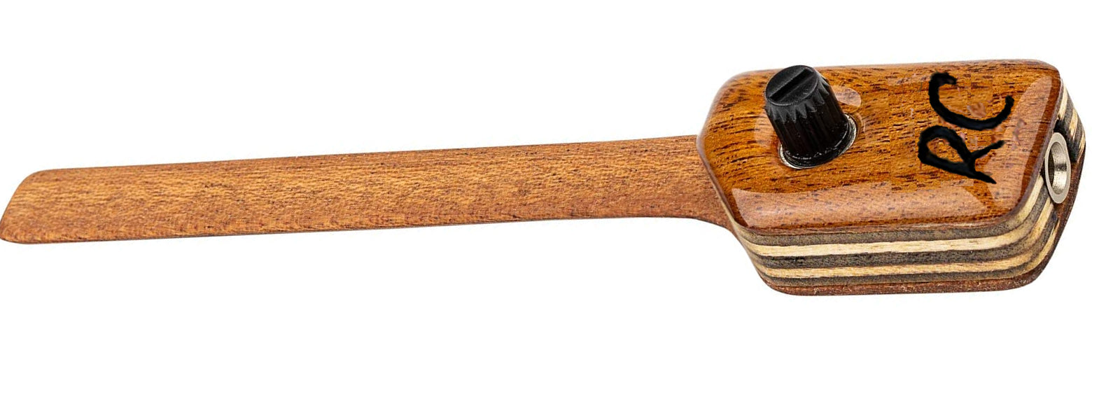 Se instala aflojando las cuerdas para poder introduir la pastilla entre el nudo de las cuerdas y el puente. Funciona por vibracion.